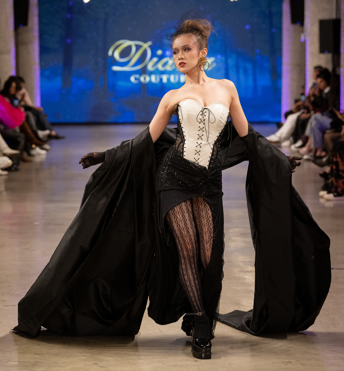 The look is defined by exposed seams, asymmetrical tailoring, layered fabrication, and dramatic contrasts between industrial materials and traditionally glamorous silhouettes. In many ways, this aesthetic reflects the city itself—an environment where the raw energy of urban culture intersects with the spectacle of the entertainment industry.