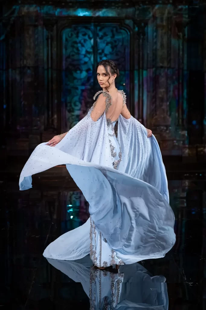 The upper body becomes the focal point again, reinforcing presence through line and proportion.Winter 2026 will see the continued rise of architectural tailoring in eveningwear, particularly in gowns designed for red carpet and high-visibility events.