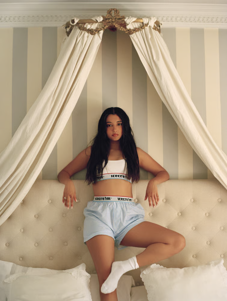 BB Trickz, whose viral hit “Super” skyrocketed her fame, brings an electrifying mix of edge and glamour, embodying the collection’s appeal to bold, creative women. The 46-piece capsule draws heavily from Icecream’s visual archives, offering graphic jersey sets, houndstooth cardigans, embroidered caps, denim shorts, and logo-stamped boxer shorts and bras, all reinterpreted with modern proportions and meticulous detailing.